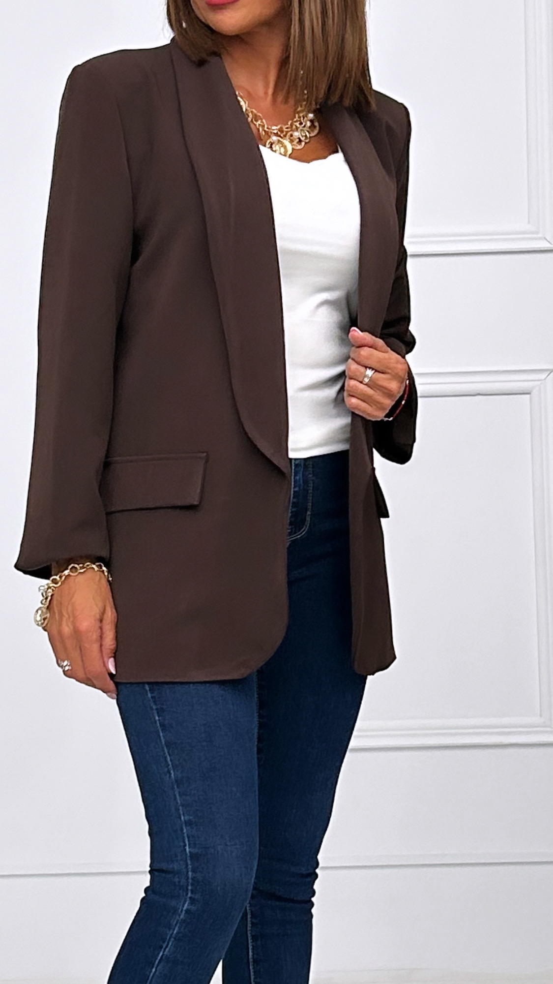 Americana de color de tendencia con la manga larga en talla única , con hombreras y forro interior .