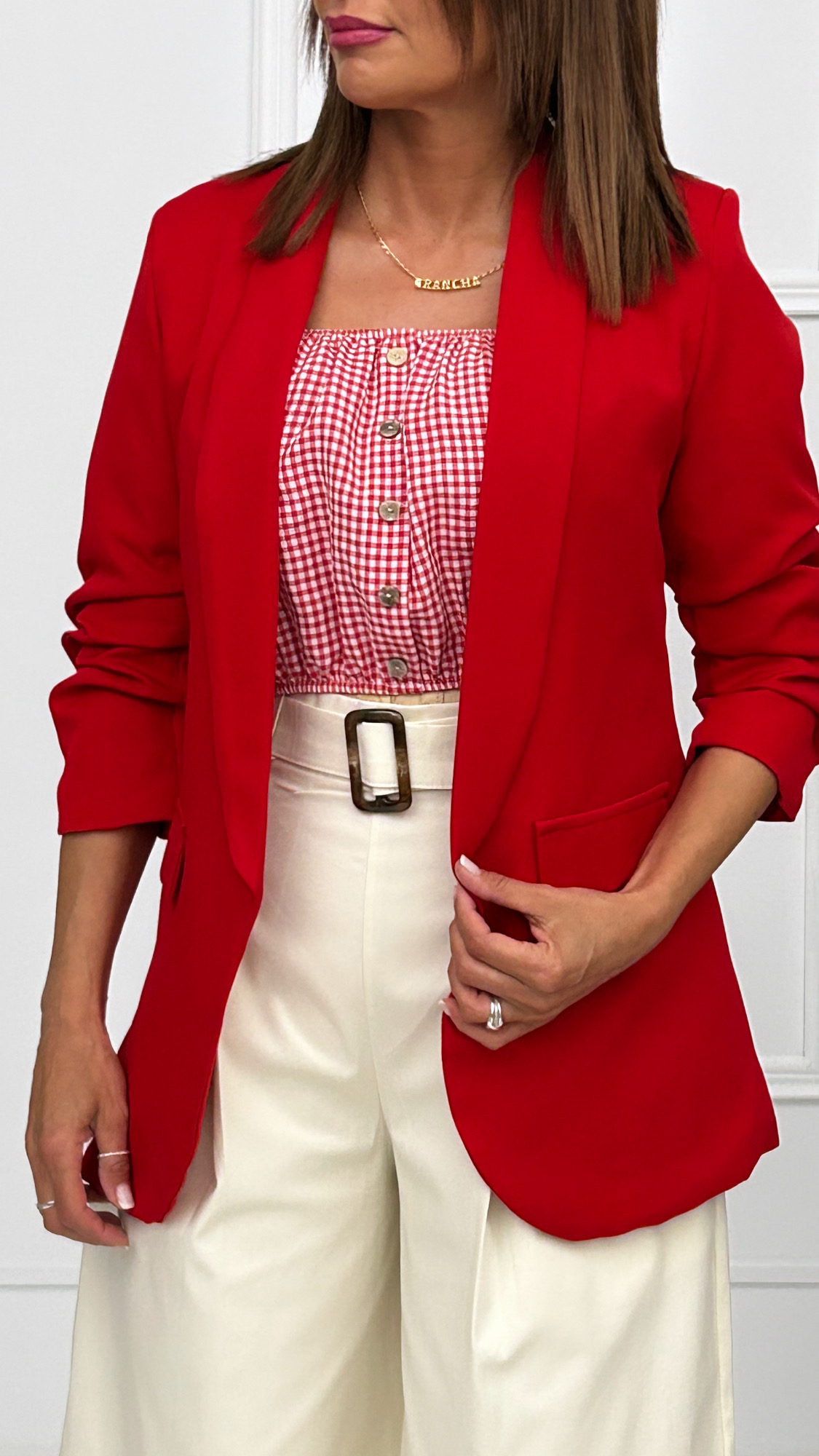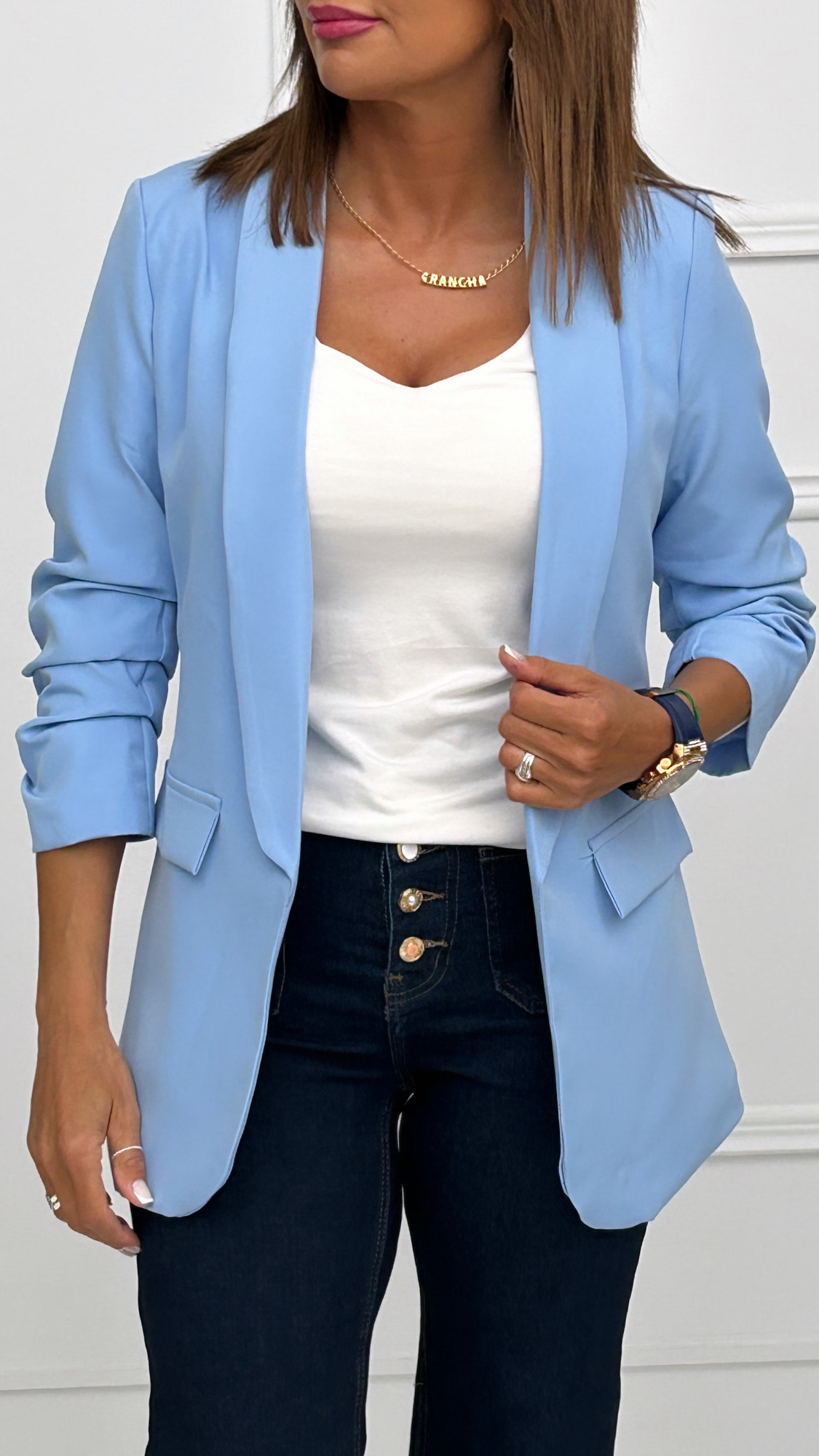 Nuevos colores para esta temporada de Primavera de nuestras blazer de manga fruncida por excelencia! Sencilla pero elegante para combinar con cada uno de tus looks. Disponible en varias tallas.