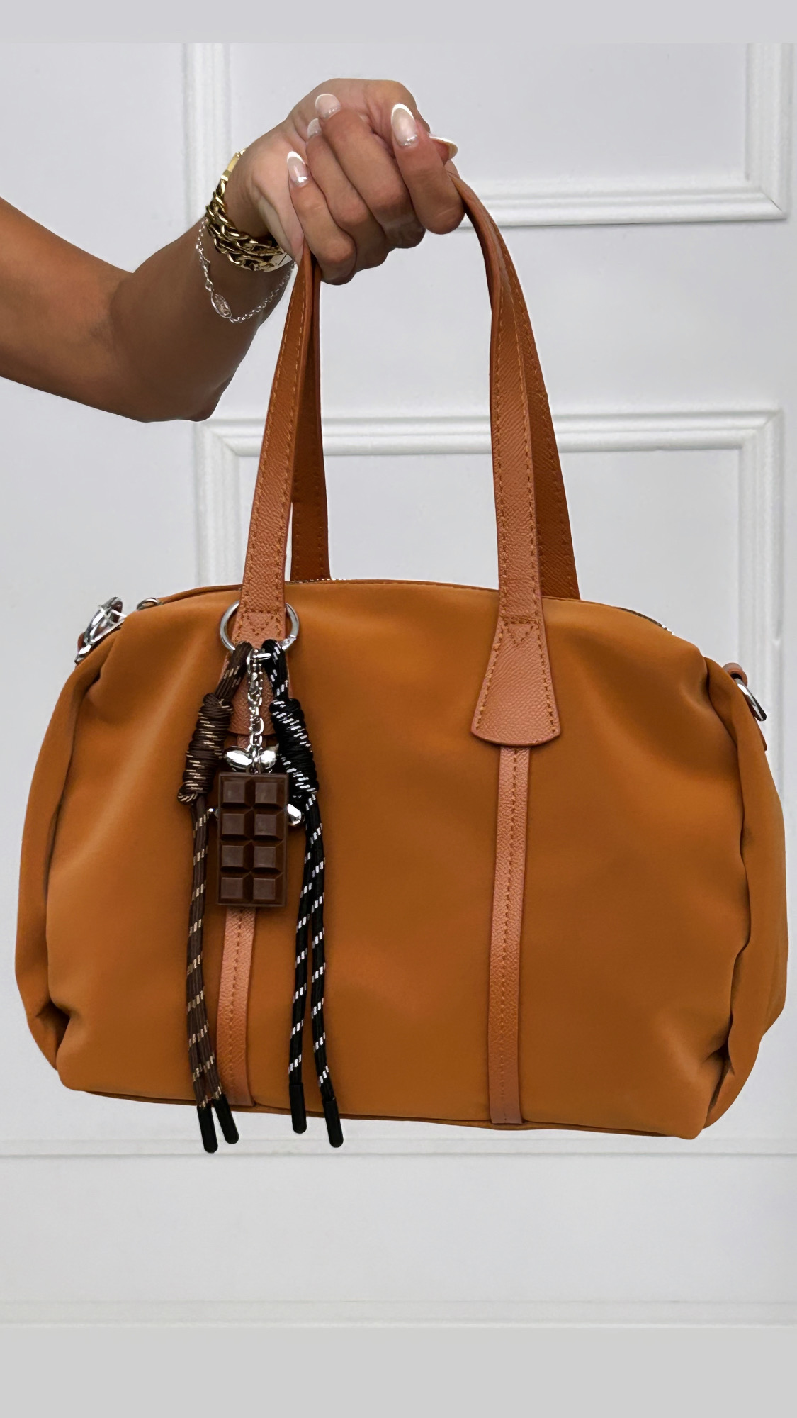Bolso impermeable en un tejido muy suave tiene cremallera en la parte de atrás, con cremallera interior y correa.