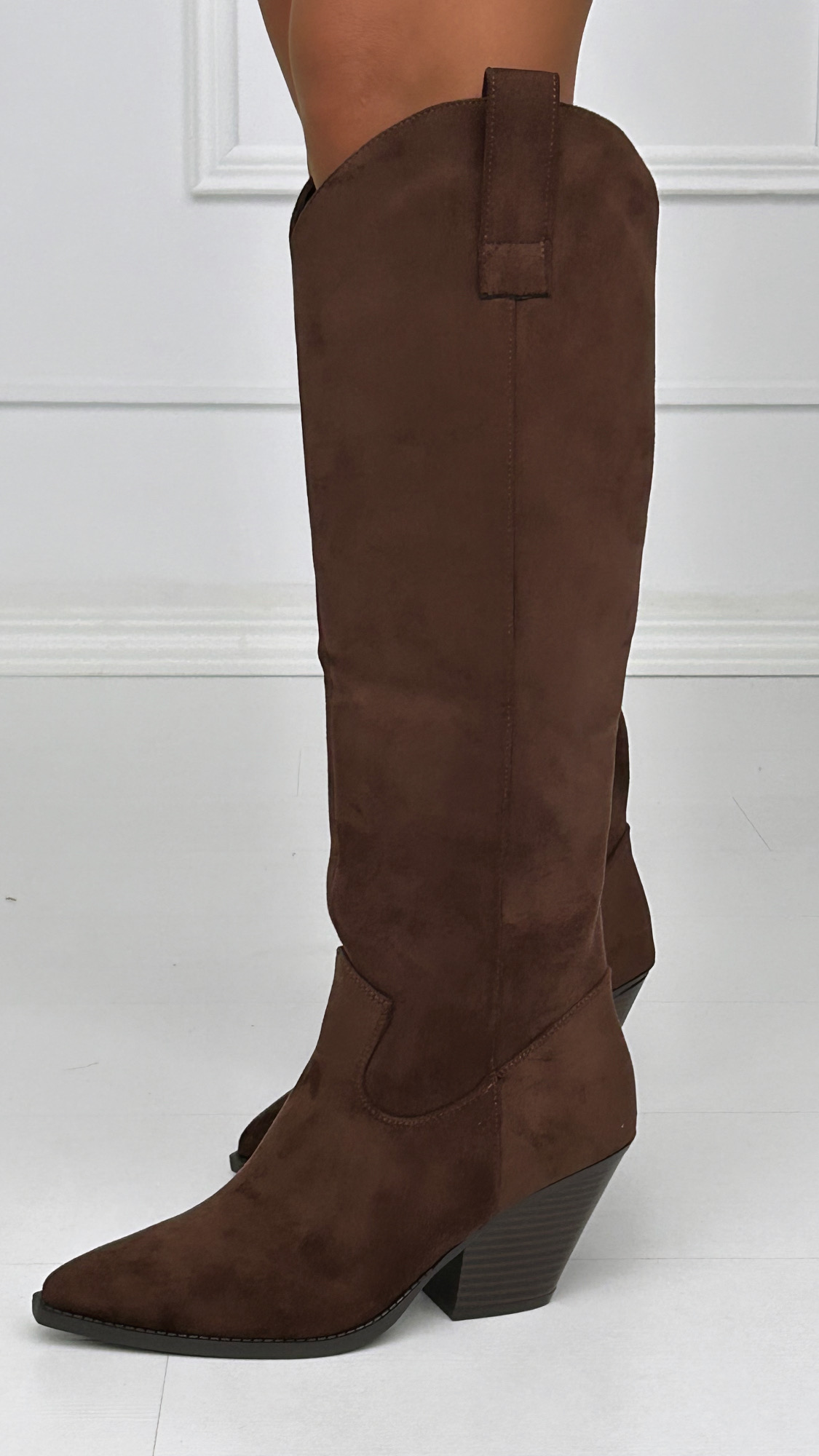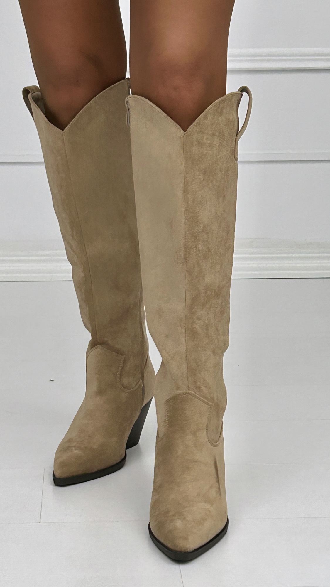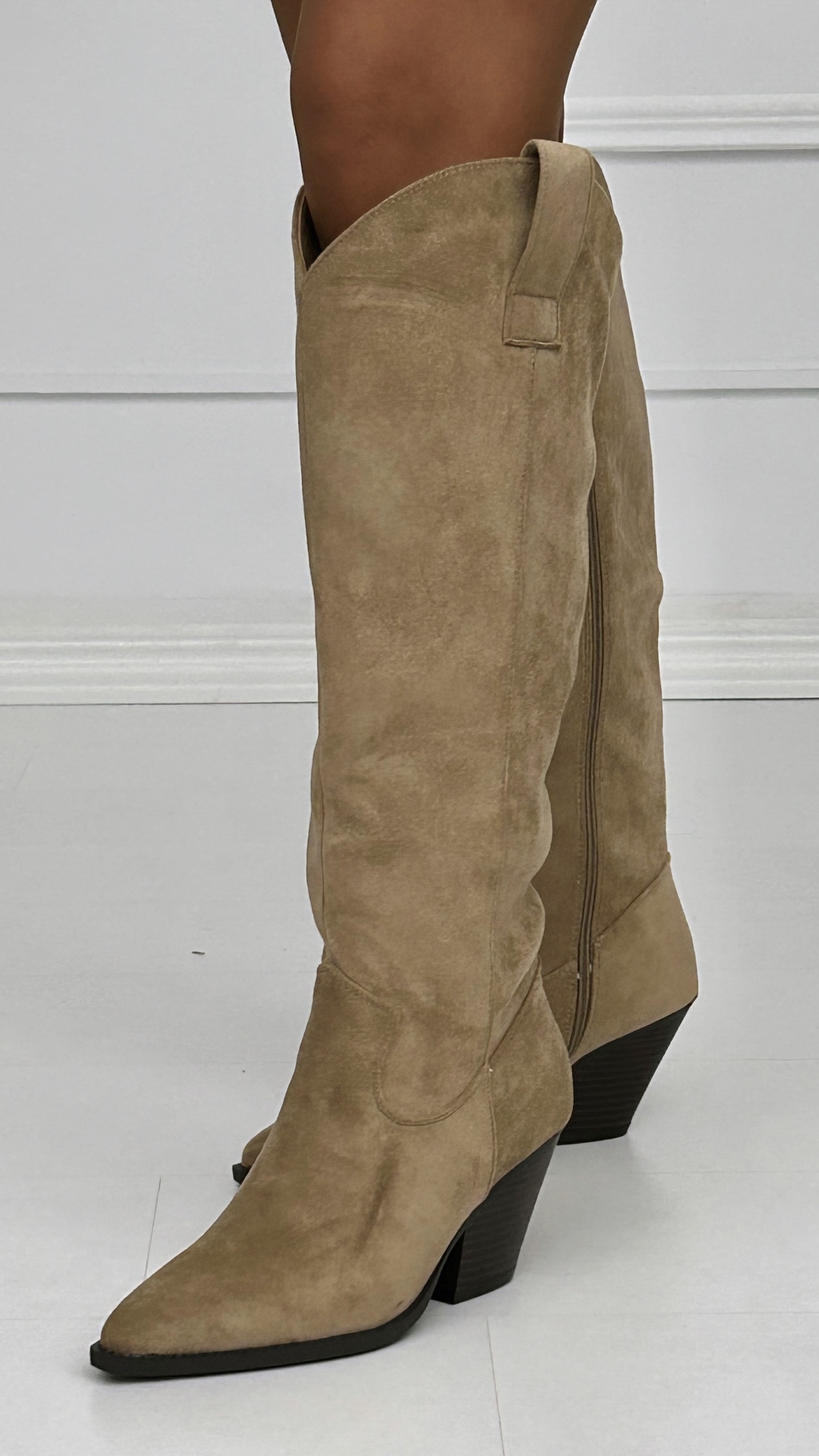 Bota estilo campera lisa de antelina con un tacón súper cómodo de 7cm. De caña alta y cremallera lateral para una mayor comodidad a la hora de calzarlas.