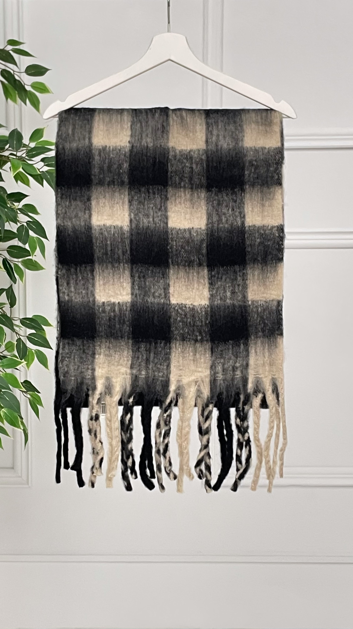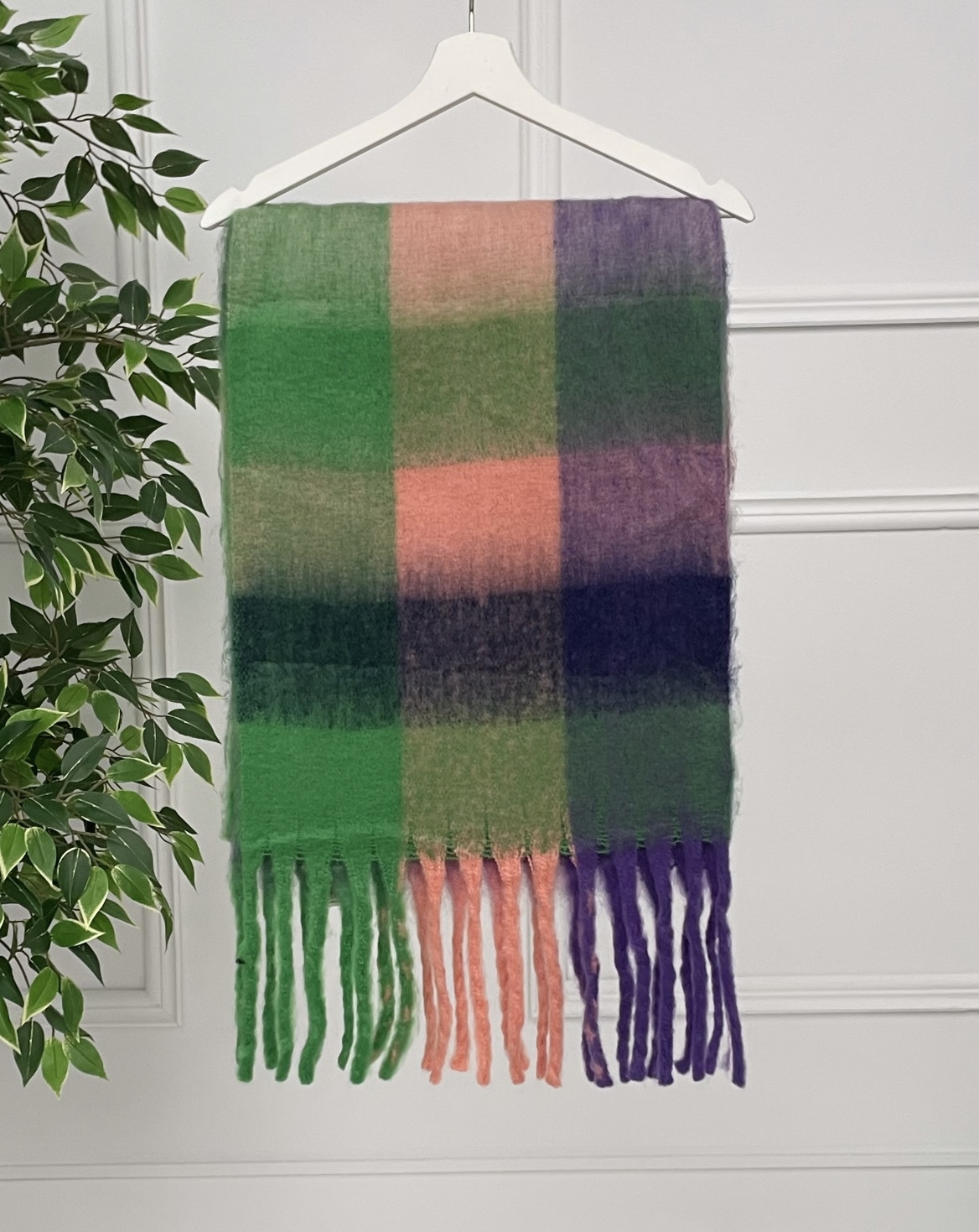 Bufanda de cuadros con flecos súper calentita disponible en diferentes combinaciones de colores para que elijas la que mejor le queda a tu outfit cada día.