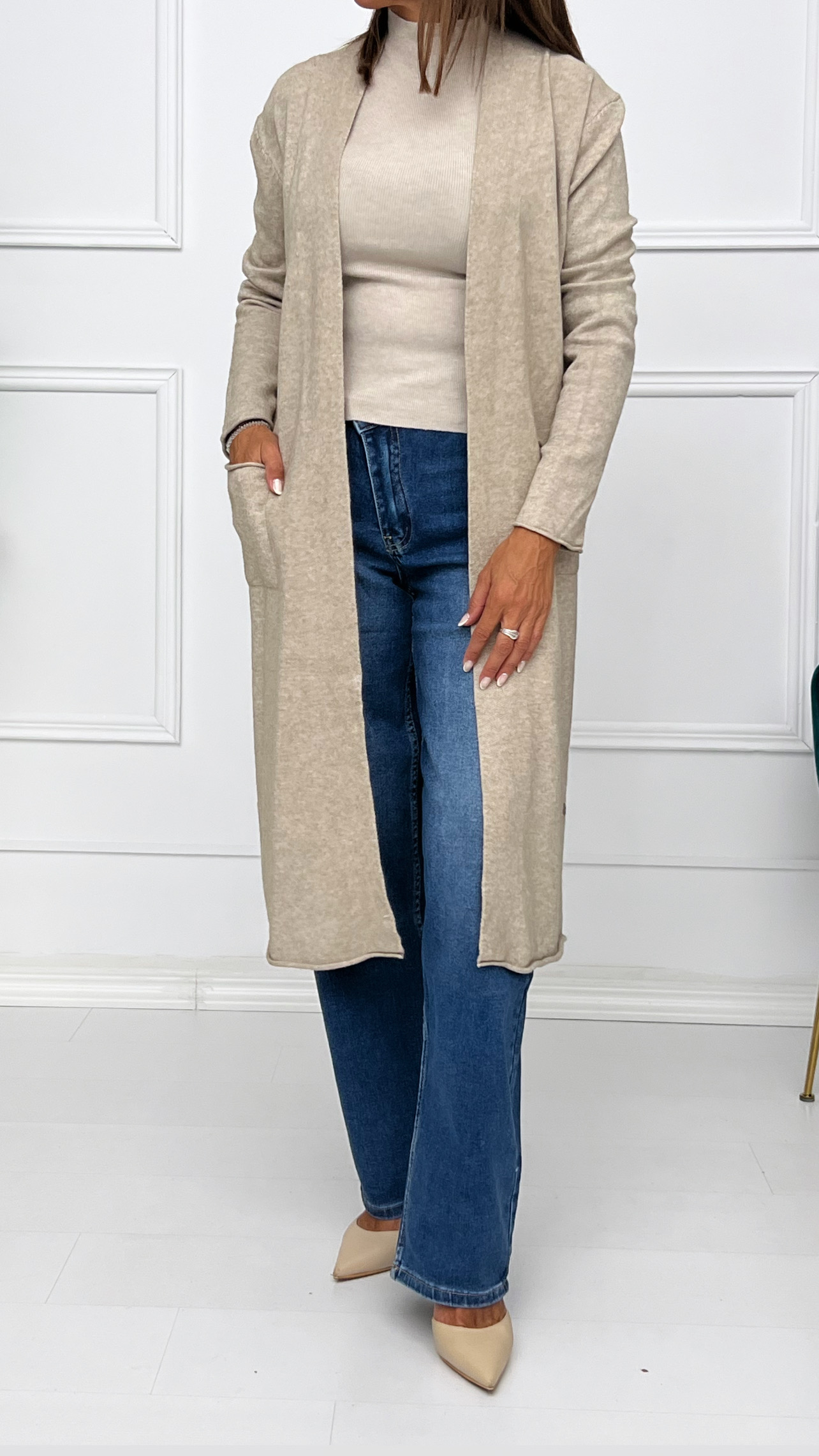 Chaqueta Larga de punto súper amorosa y suave al tacto además de cómoda y calentita. Manga larga y bolsillos cuadrados en los laterales. Disponible en varios colores. Sin costuras en puño y bajos. Modelo abierto por lo que se adapta a más contorno.