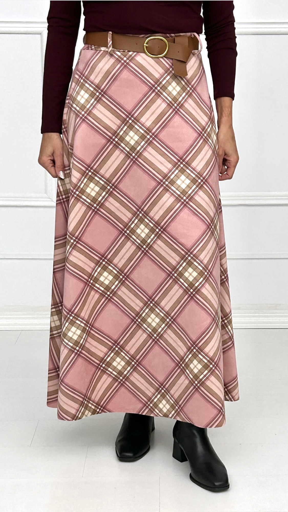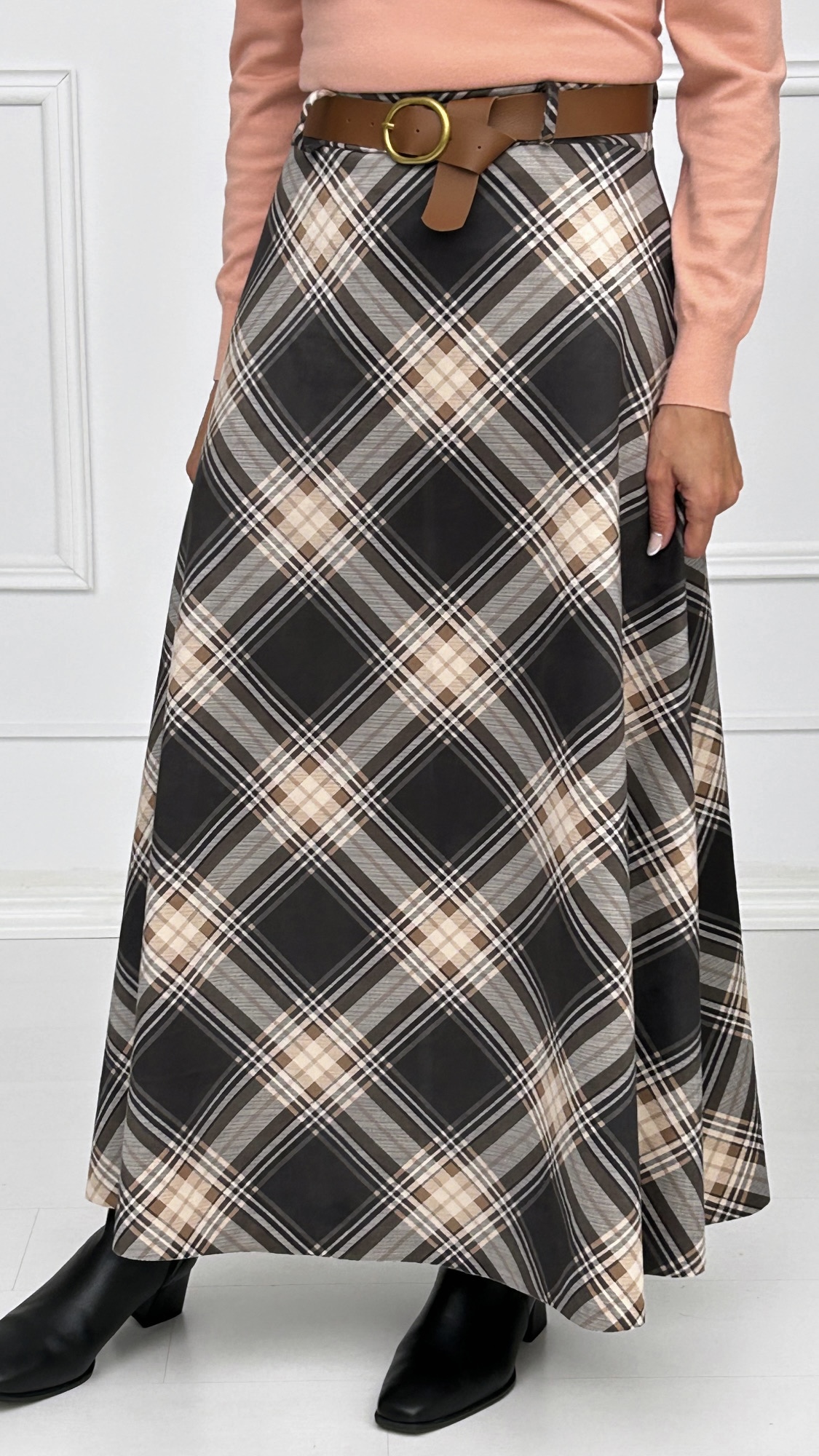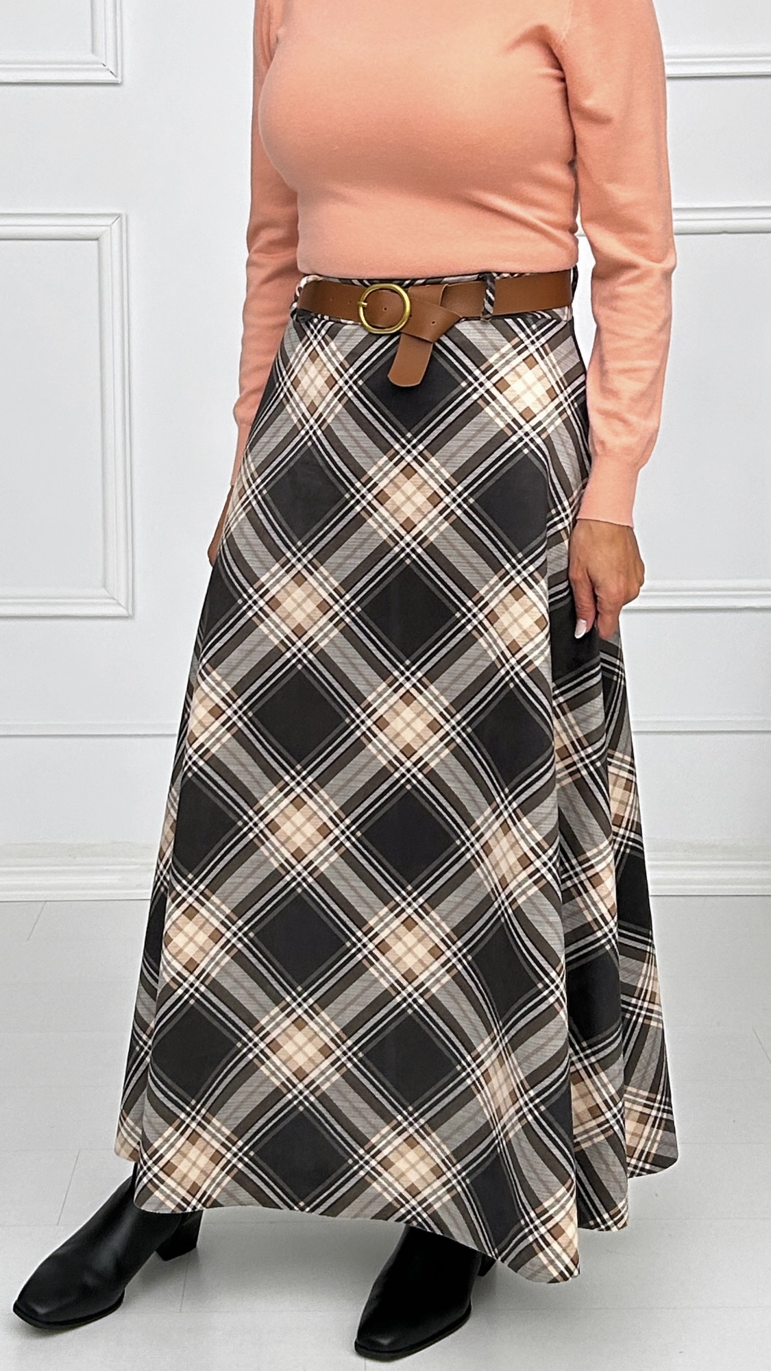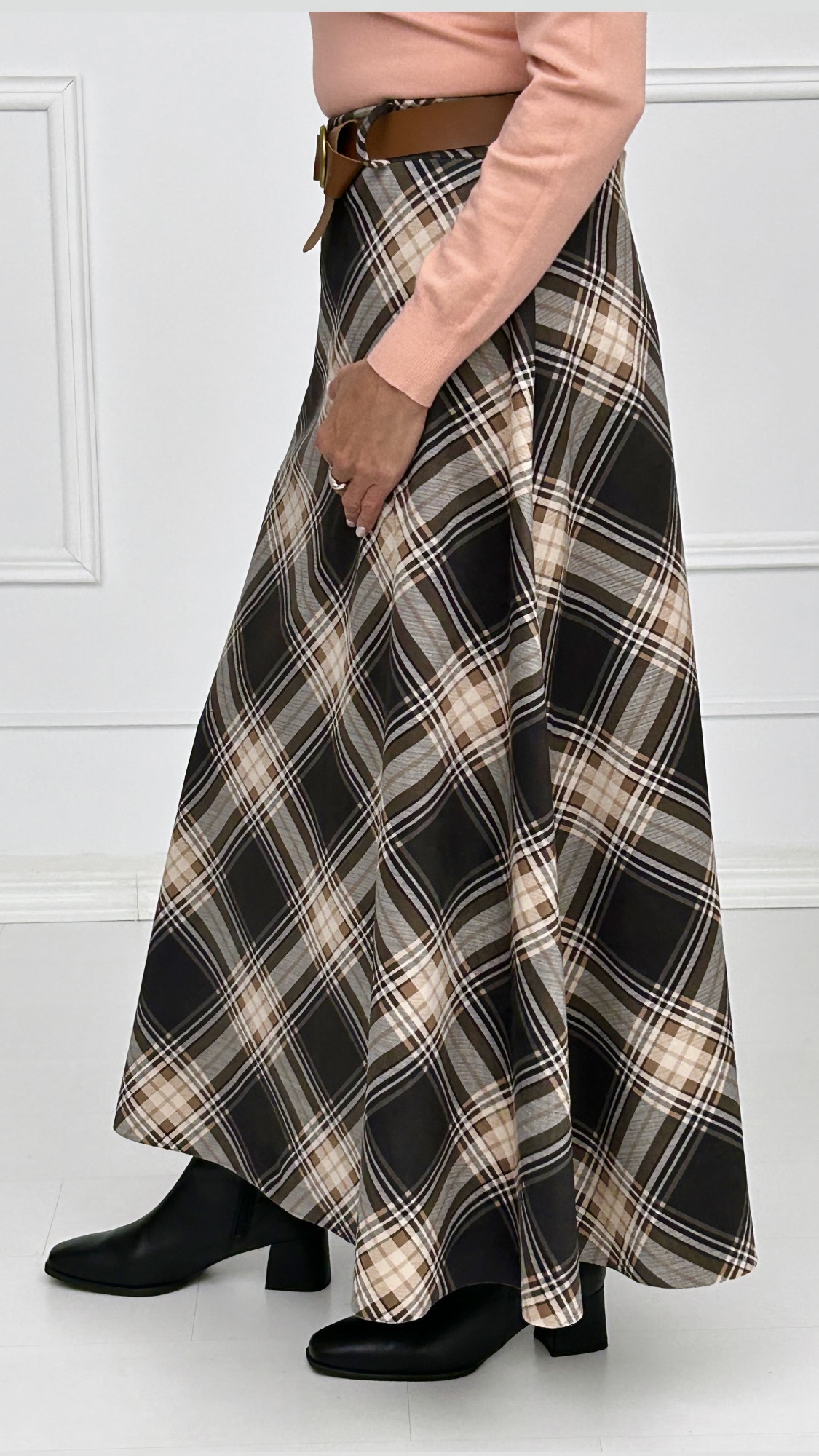 Falda de corte evasé de estampado de cuadros, una prenda que arrasará esta temporada, ya que los cuadros vienen pisando fuerte!!
