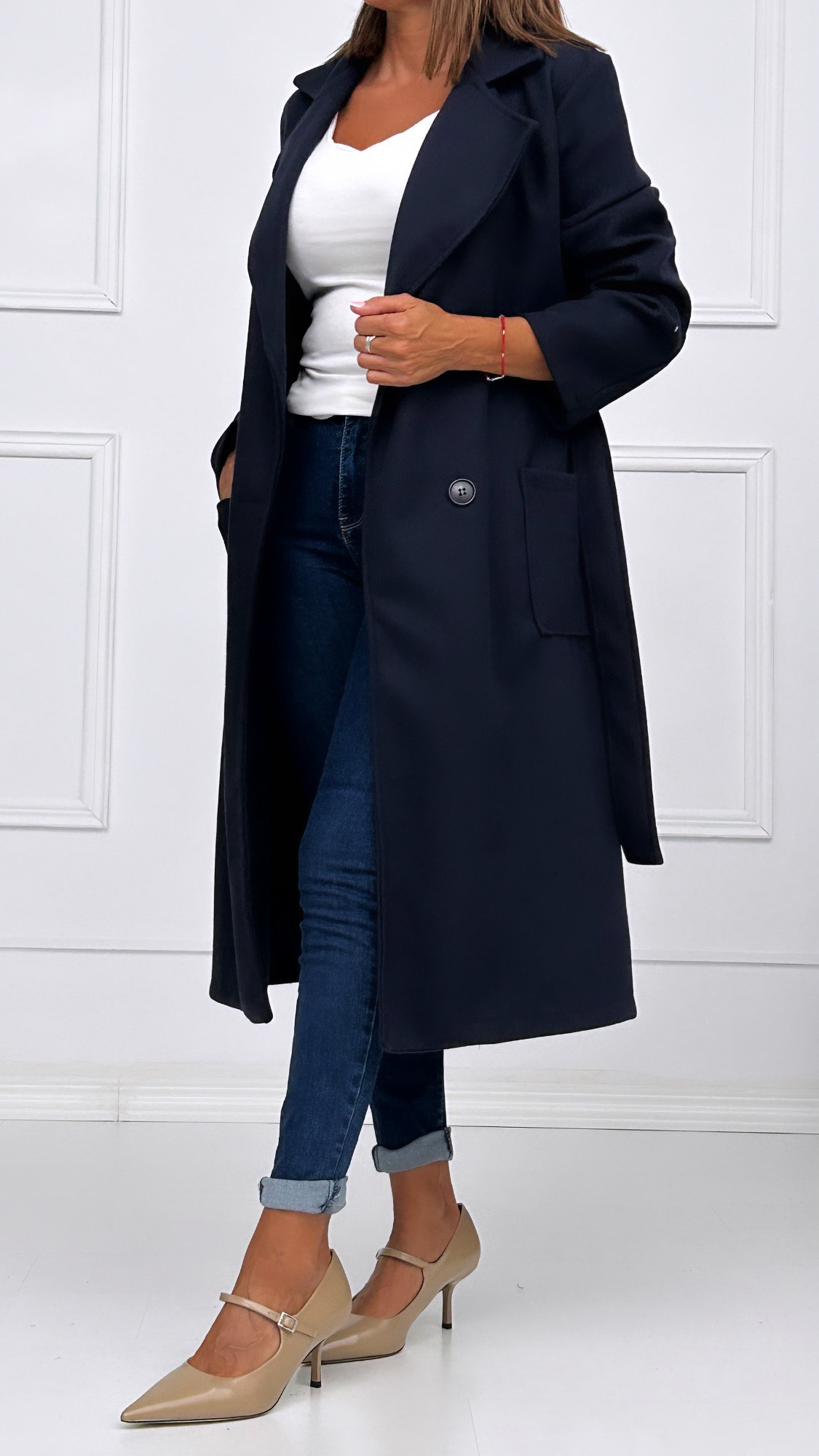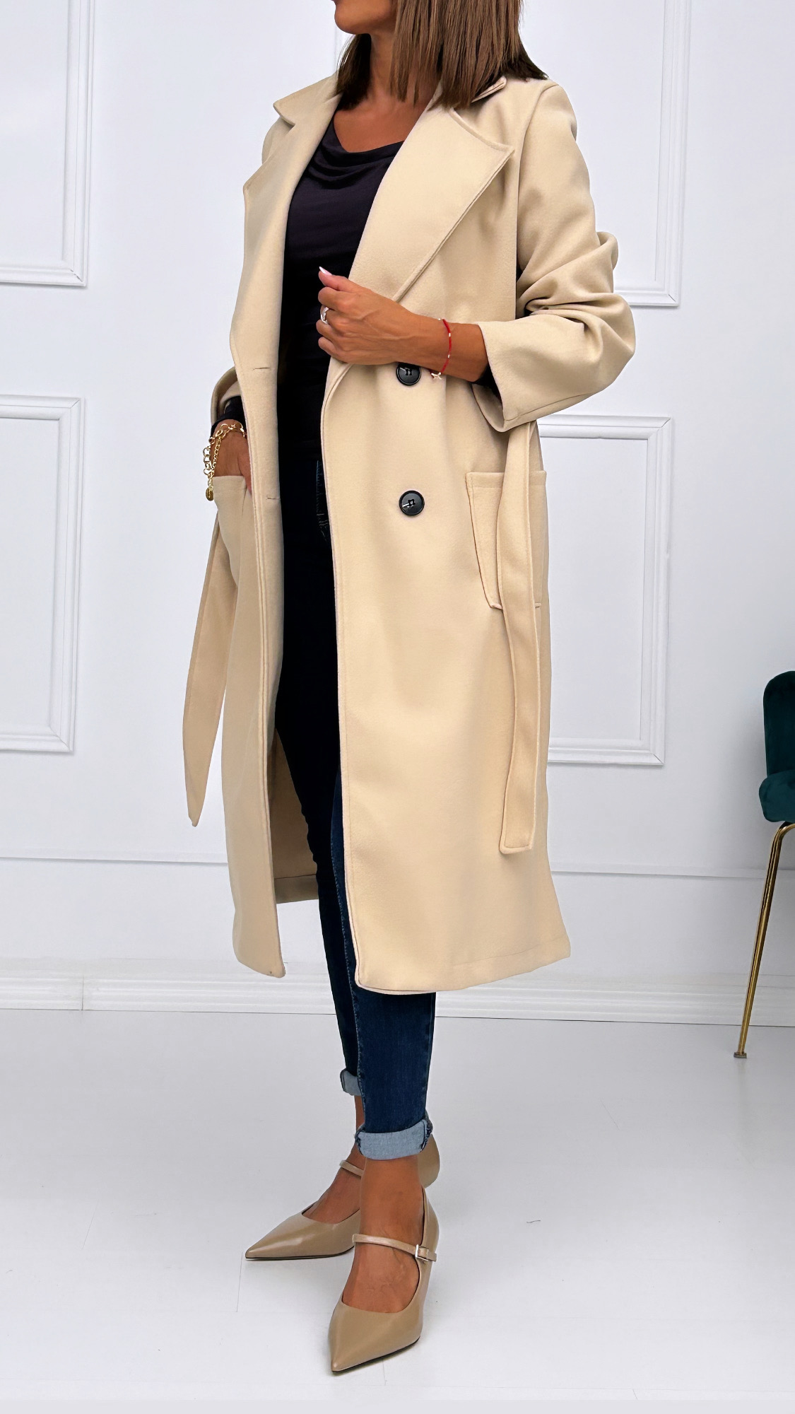 Gabardina de corte midi con botones y cinturón de la misma tela de paño y bolsillos. Una novedad muy bonita que nos hará lucir perfectas este otoño.