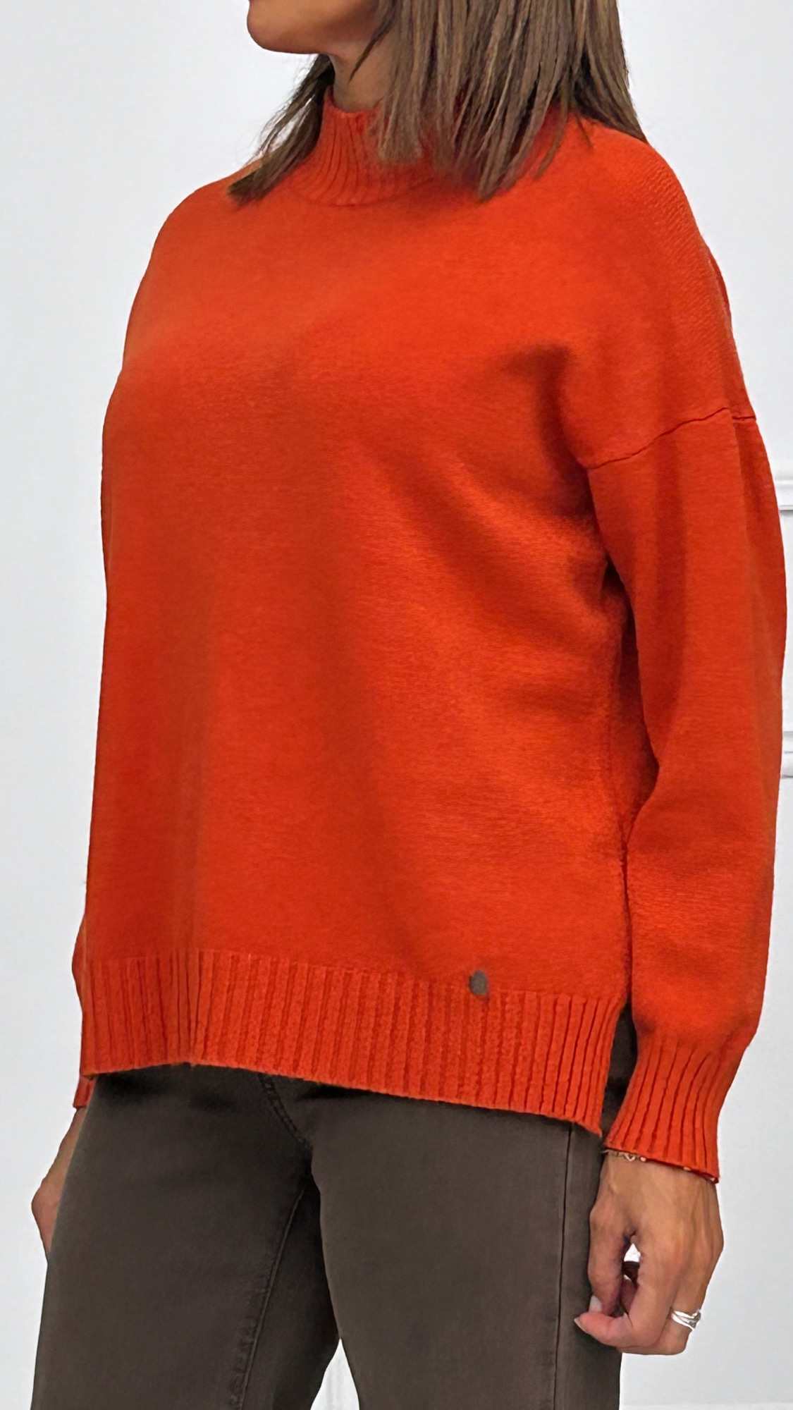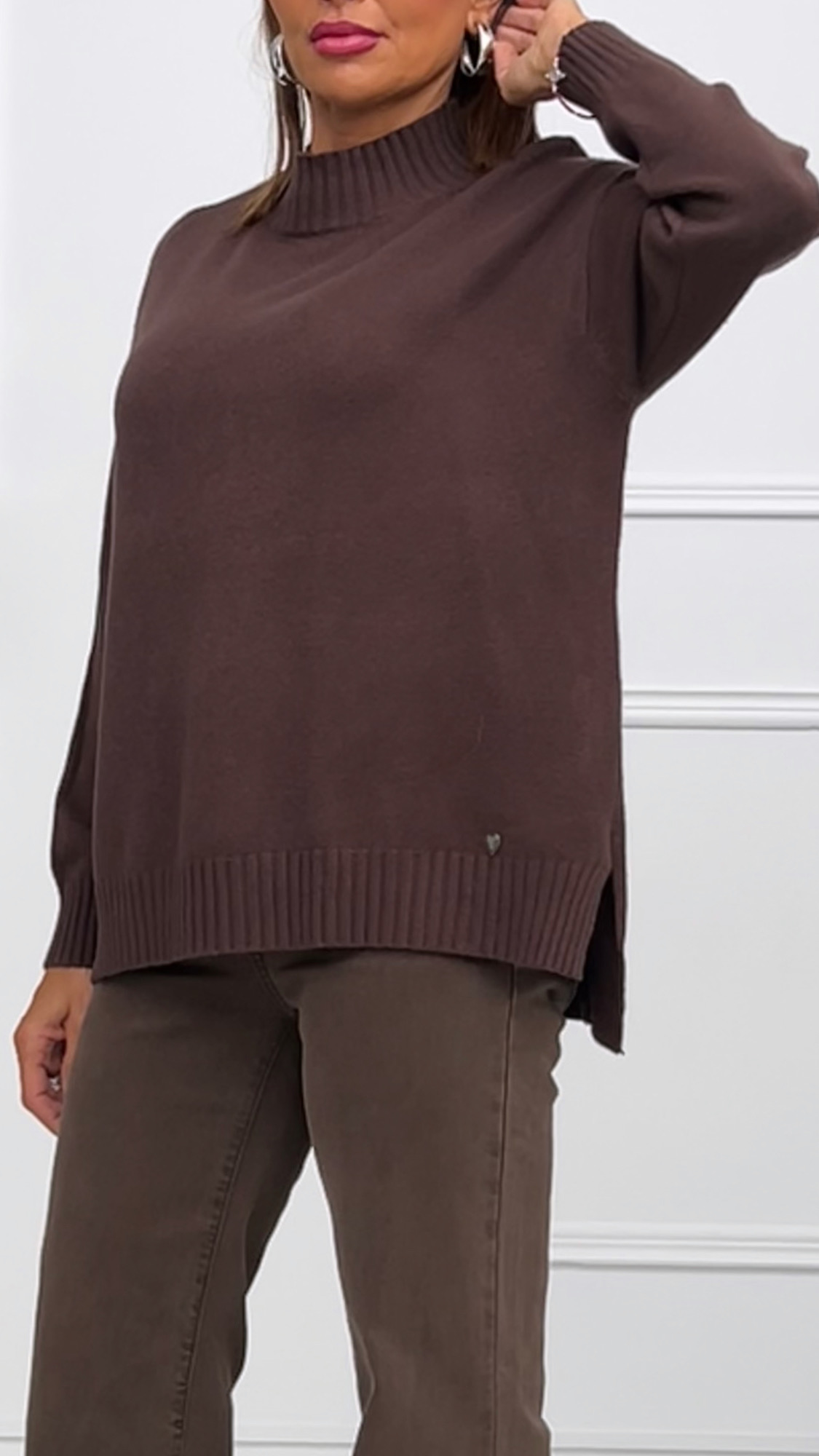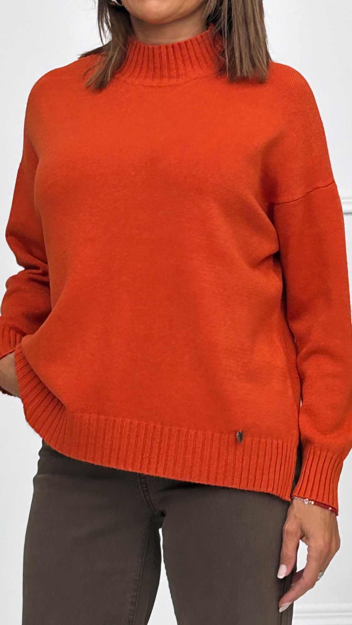 Jersey de punto con manga larga y cuello chimenea. Corte recto y bajo más largo en su parte trasera que en la delantera. Disponible en varios colores. Lucirá ideal con nuestros vaqueros Joya en los colores de Otoño.