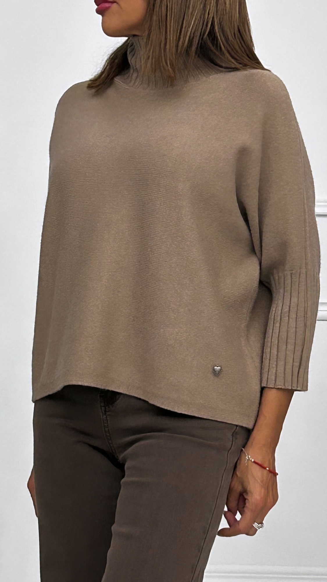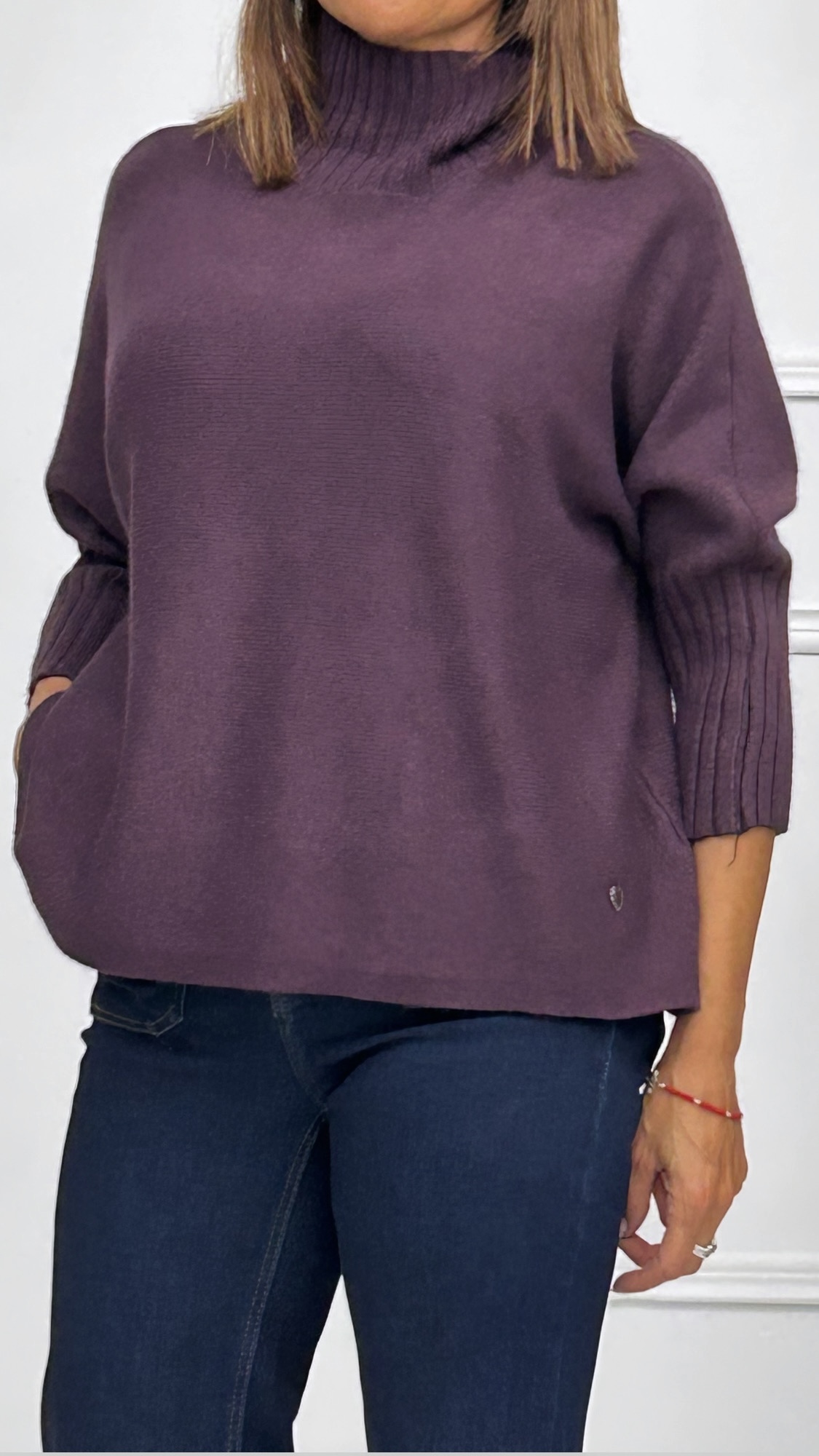 Jersey de punto que es el complemento ideal para nuestra falda plisada de punto. Disponible en dos colores. Tiene cuello estilo chimenea y manga tres cuartos con puño ancho. Bajo recto.