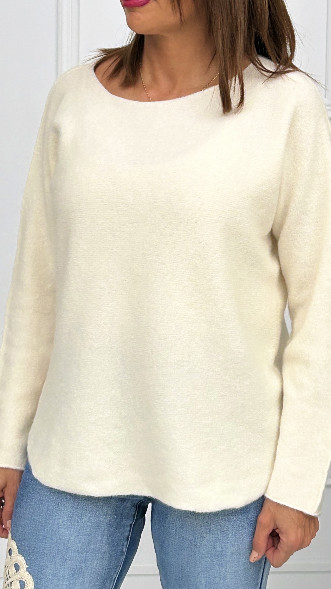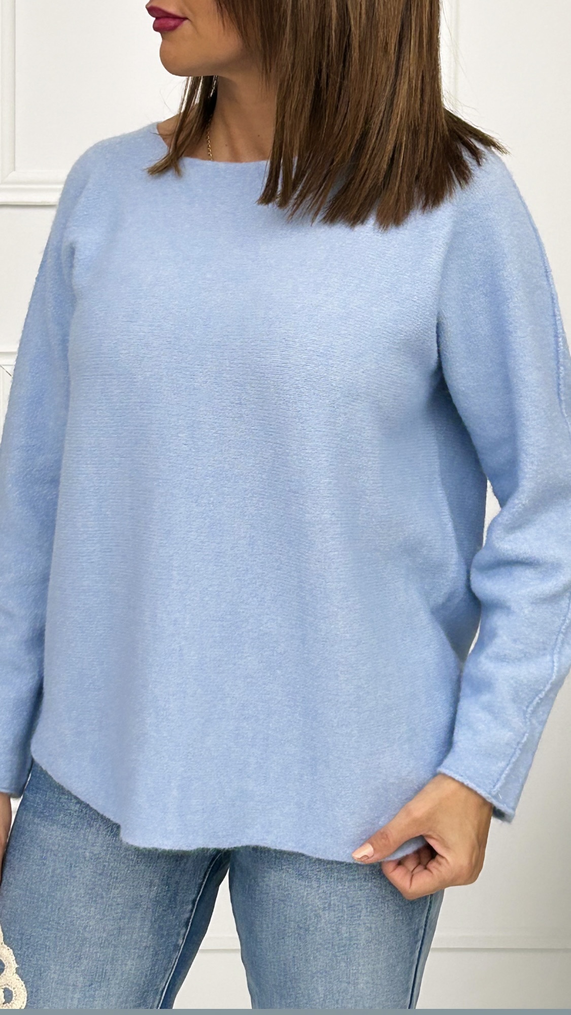 Jersey de cuello redondo con la parte de abajo redondeada perfecto para esta temporada. Con colores vibrantes que nos hacen querer uno de cada.