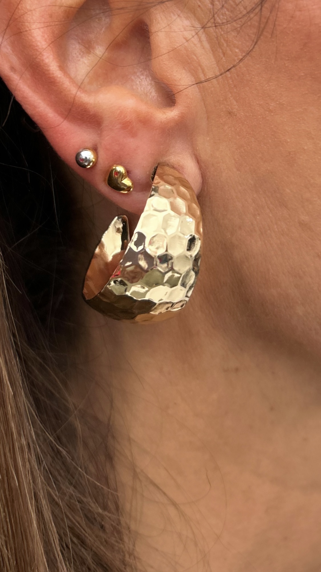 Pendientes de aro ancho con textura disponibles en plata y dorado. De metal anti alérgico. Cierre clásico de tuerca. súper cómodos, no pesan nada.